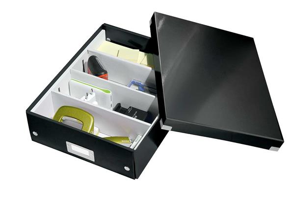 KezdőlapIrodaszerekCsomagolás, tárolásTárolódobozok, ládák és kosarakDoboz, rendszerező, M méret, LEITZ "Click&Store", fekete