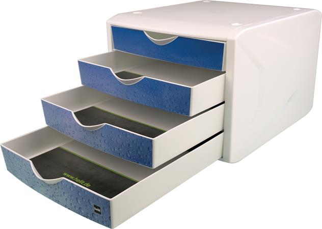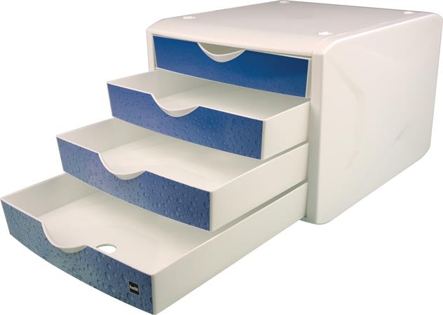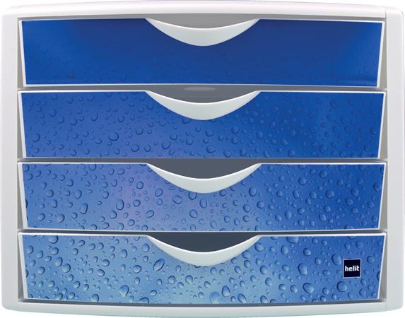 Irattároló, műanyag, 4 fiókos, HELIT "Chameleon", fehér-kék