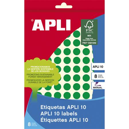 Etikett, 10 mm kör, kézzel írható, színes, APLI, zöld, 1008 etikett/csomag