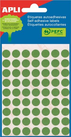 Etikett, 10 mm kör, kézzel írható, színes, APLI, zöld, 315 etikett/csomag
