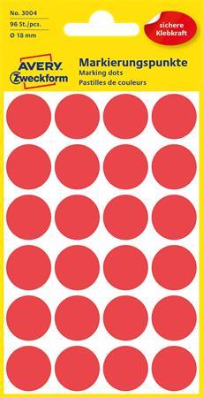 Etikett, 18 mm, kör, AVERY ZWECKFORM, piros, 96 etikett/csomag