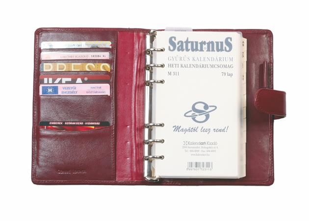 Kalendárium, gyűrűs, betétlapokkal, "S", marhabőr, SATURNUS, "212", fekete