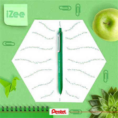 Golyóstoll, 0,35 mm, nyomógombos, PENTEL "iZee", zöld