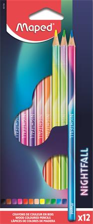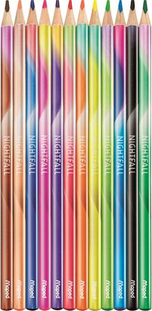 Színes ceruza készlet, háromszögletű, MAPED "Nightfall", 12 különböző szín