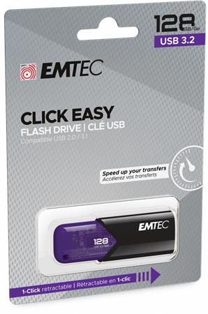 Pendrive, 128GB, USB 3.2, EMTEC "B110 Click Easy", fekete-lila