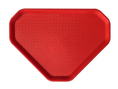 Önkiszolgáló tálca, háromszögletű, műanyag, éttermi, piros, 47,5x34 cm